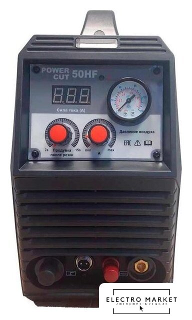 Комплект поставки | 1. Установка плазменной резки POWER CUT 50HF;2. Плазматрон AG60P с длинной рукава 4 метров;3. Обратный кабель 2 метра 10 мм2 с зажимом массы;4. Сетевой кабель 2,3 метра без вилки;5. Фильтр с регулятором давления;6. Комплект запчастей плазмотрона, необходимый для запуска оборудования и работы на первых этапах использования (катоды, сопла; защитный колпачок);7. Хомуты для шланг 4 шт;8. Фум-лента. |