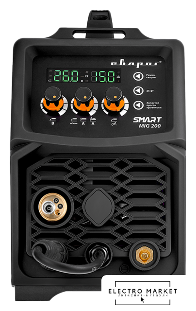 | Сварочный ток | 20 — 200 А (MIG:30–200А, MMA:20–160А, TIG:20–180А) |