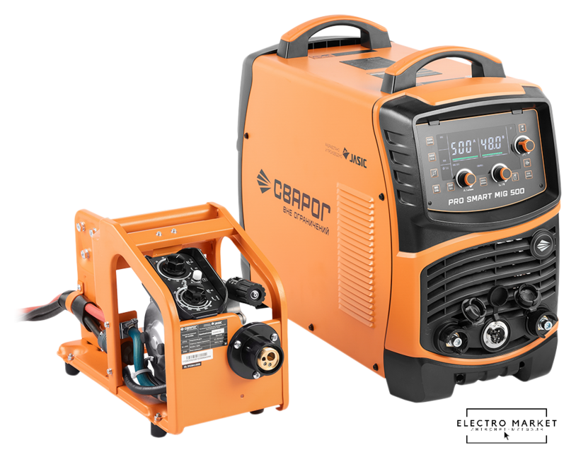 ручная дуговая сварка (MMA)/полуавтоматическая сварка (MIG MAG), 380 В, сварочный ток: 80–500 А, диаметр электрода: 1–1.6 мм, 42 кг