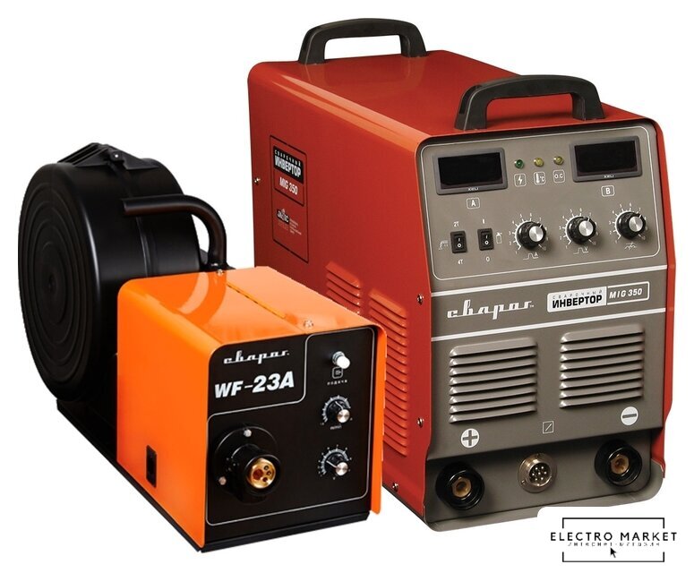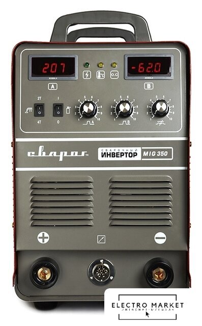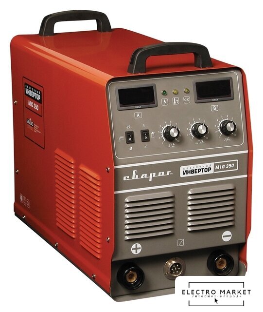 ручная дуговая сварка (MMA)/полуавтоматическая сварка (MIG MAG), 380 В, сварочный ток: 40–350 А, диаметр электрода: 1–1.2 мм, 36 кг