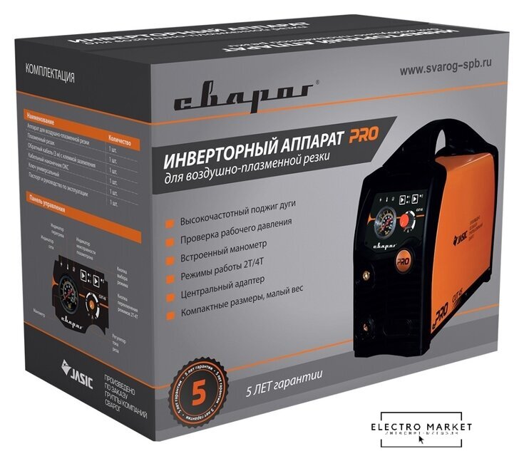 Комплект поставки | Инверторный аппарат воздушно-плазменной резки - 1 штПлазменный резак в сборе CS 50 (IVT6807), 6 м - 1 штКлемма заземления в сборе 200 А, 3 м - 1 штКомплект ЗИП - 1 штПаспорт - 1 штРуководство по эксплуатации - 1 шт |
