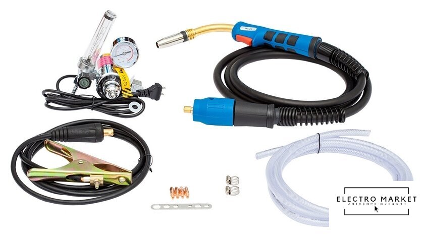 Комплект поставки | Инверторный сварочный аппарат - 1 штГорелка в сборе MS 24, 3 м - 1 штКлемма заземления в сборе 300 А, 3 м - 1 штРедуктор с подогревом - 1 штКомплект ЗИП - 1 штРуководство по эксплуатации - 1 штПаспорт - 1 шт |