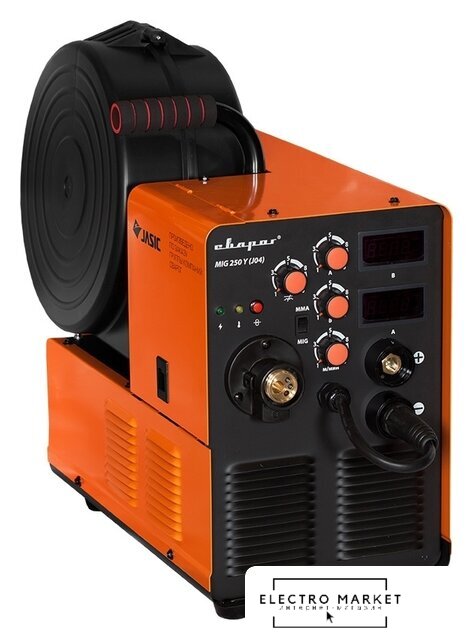 полуавтоматическая сварка (MIG MAG), 220 В, сварочный ток: 50–200 А, диаметр электрода: 0.6–1 мм, 25 кг