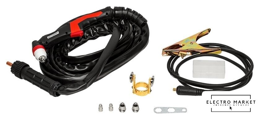 | Комплект поставки | Инверторный аппарат для воздушно-плазменной резки - 1 шт.Плазменный резак P80 в сборе, 5 м - 1 шт.Клемма заземления в сборе 200 А, 2,5 м - 1 шт.Комплект ЗИП - 1 шт.Руководство по эксплуатации - 1 шт.Паспорт - 1 шт. |
