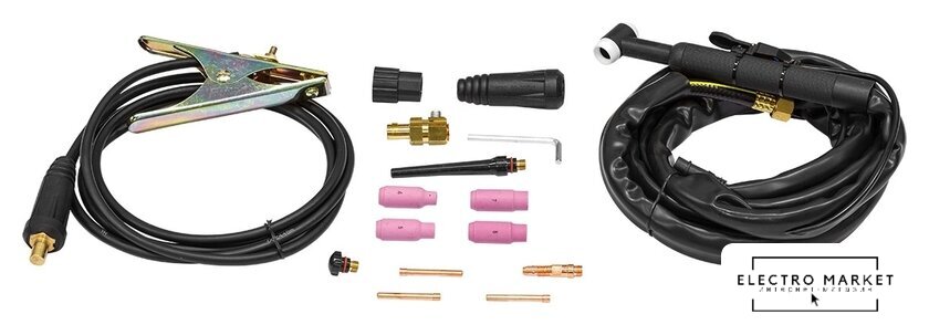 | Комплект поставки | Инверторный сварочный аппарат - 1 шт.Горелка SR-26 в сборе, 4 м - 1 шт.Клемма заземления в сборе 200 А, 2,5 м - 1 шт.Комплект ЗИП - 1 шт.Руководство по эксплуатации - 1 шт.Паспорт - 1 шт. |