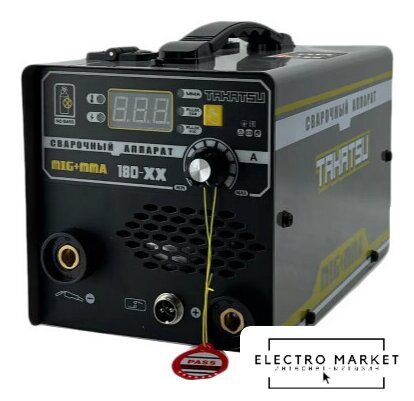 ручная дуговая сварка (MMA)/полуавтоматическая сварка (MIG MAG), входное напряжение 160–220 В, сварочный ток: 20–180 А, диаметр электрода: 1.6–4 мм, 5.1 кг