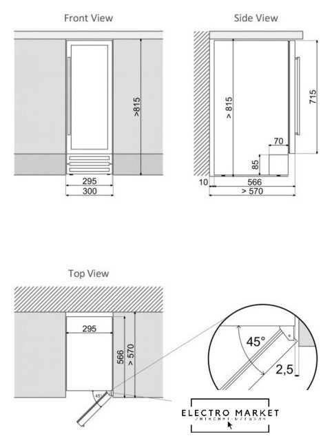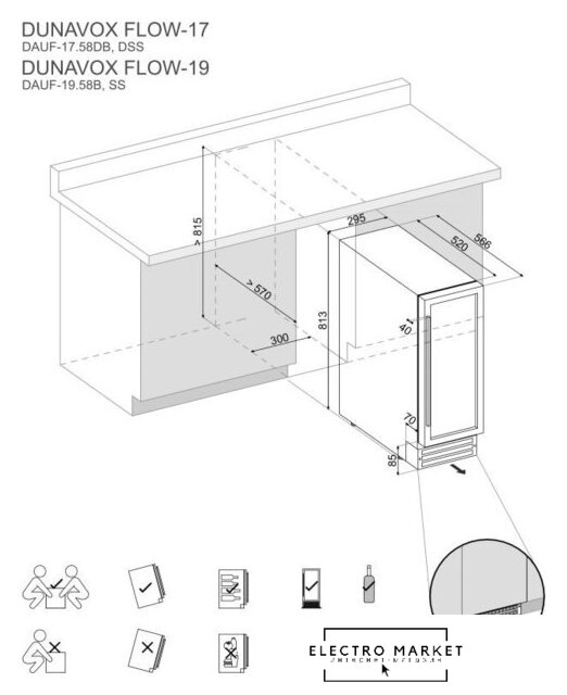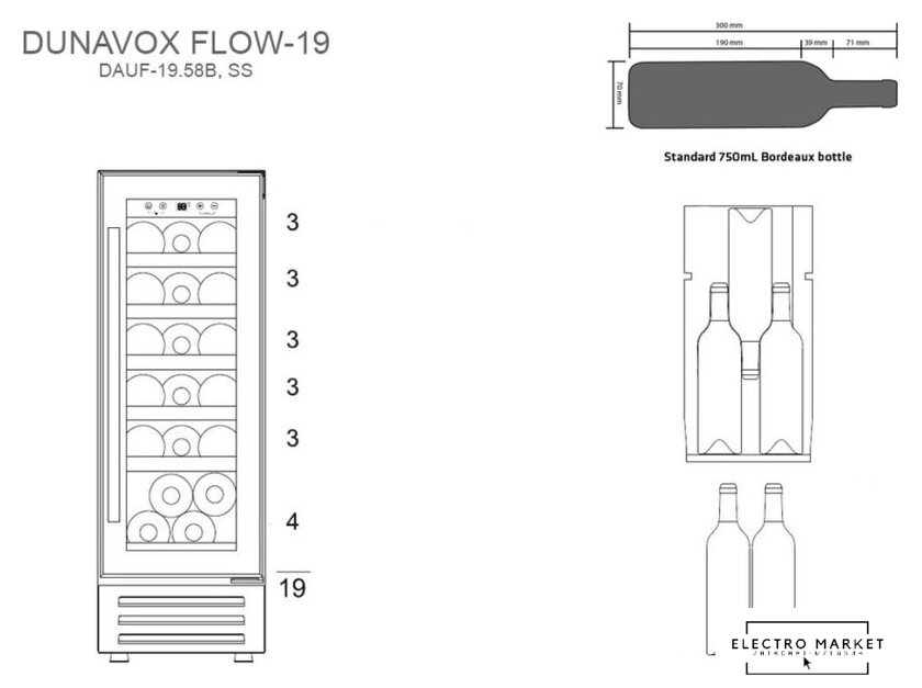 встраиваемый, 2 зоны температуры, 60 бутылок