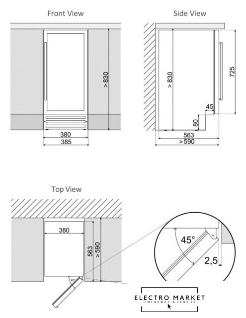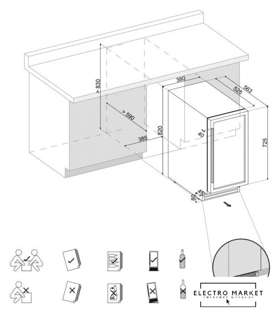 встраиваемый, 2 зоны температуры, 193 бутылки