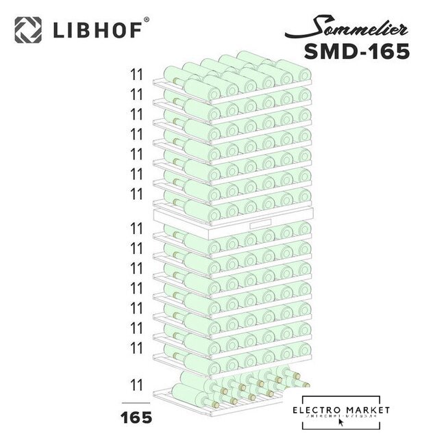 с возможностью встраивания, 2 зоны температуры, 165 бутылок