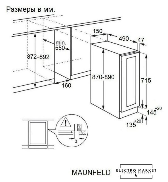 Размеры ниши для встраивания |