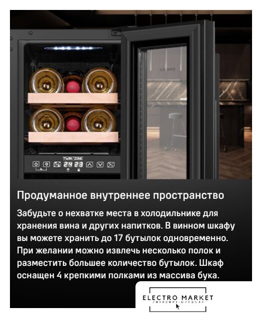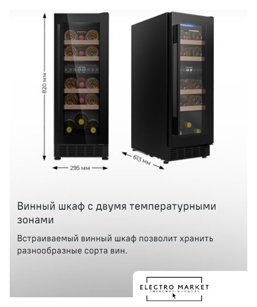 с возможностью встраивания, 2 зоны температуры, 17 бутылок