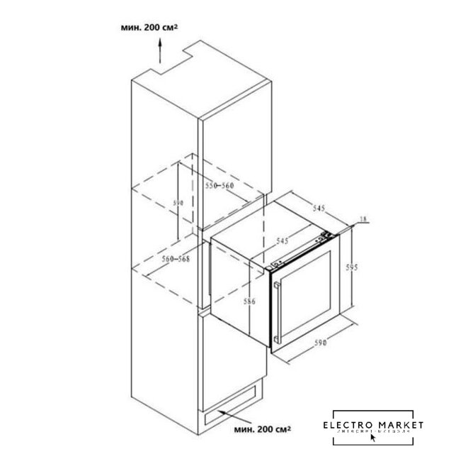 встраиваемый, 2 зоны температуры, 36 бутылок
