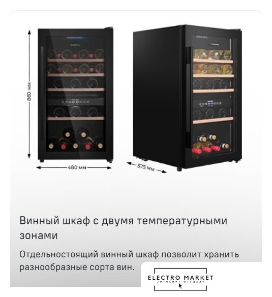 отдельностоящий, 1 зона температуры, 34 бутылки