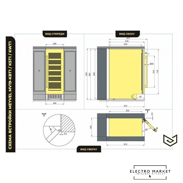с возможностью встраивания, 1 зона температуры, 20 бутылок