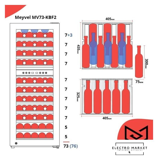 отдельностоящий, 2 зоны температуры, 24 бутылки