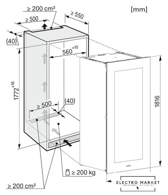 встраиваемый, 3 зоны температуры, 182 бутылки