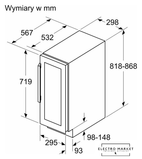 встраиваемый, 2 зоны температуры, 34 бутылки