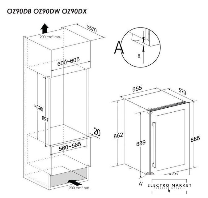 встраиваемый, 2 зоны температуры, 36 бутылок