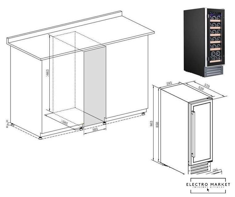 с возможностью встраивания, 2 зоны температуры, 171 бутылка