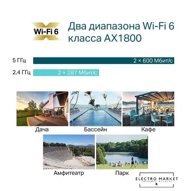 802.11ax (Wi-Fi 6), 2.4 ГГц/5 ГГц, до 5378 Mbps, 802.1X