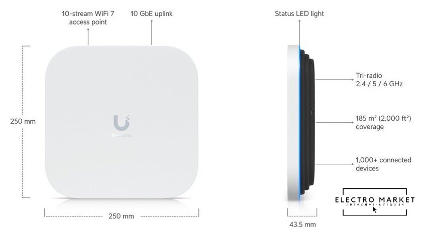 802.11be (Wi-Fi 7), 2.4 ГГц/5 ГГц/6 ГГц, до 19000 Mbps, 802.1X, 2x100Mbit LAN