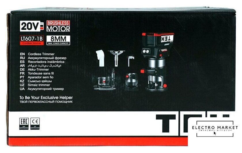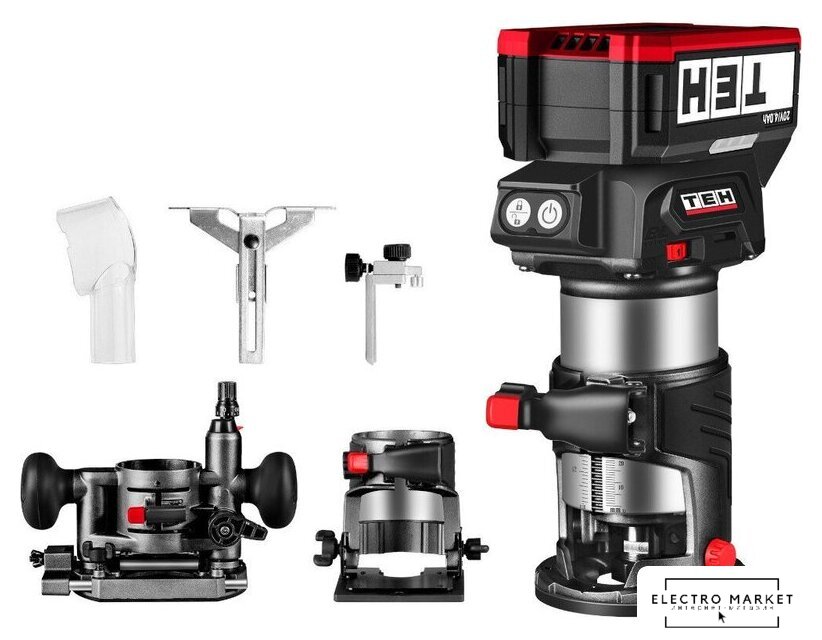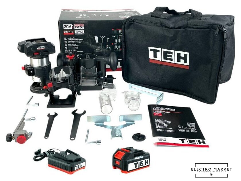 | Комплектация | - Аккумуляторный фрезер;, - Аккумуляторная батарея 4 Ач;, - Зарядное устройство;, - Кромочное основание;, - Наклонное основание;, - Погружное основание;, - Дополнительные принадлежности – 5 предметов;, - Набор ключей;, - Руководство по эксплуатации;, - Тканевая сумка;, - Упаковка (картонная коробка). |