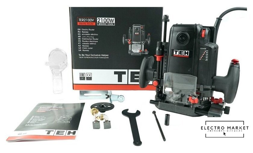 | Комплектация | - Фрезер;, - Параллельный упор;, - Центральный упор;, - Копировальная шайба;, - Цанга 8 мм.;, - Цанга 12 мм.;, - Щиток защитный;, - Пылеотводящий патрубок;, - Ключ гаечный;, - Запасные угольные щетки;, - Руководство по эксплуатации;, - Упаковка (картонная коробка). |
