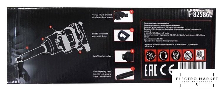 ударный, 2180 Нм, 4200 об/мин, расход воздуха: 1200 л/мин, давление: 8 бар