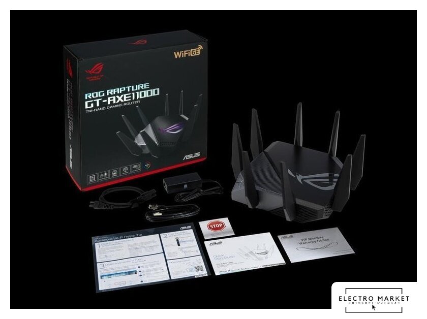 Комплектация | - ASUS ROG Rapture GT-AXE11000- Блок питания- кабель LAN длиной 1,5 м- Руководство по установке |