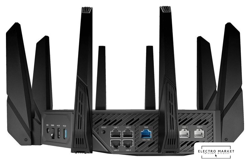 802.11ax (Wi-Fi 6), 2.4 ГГц/5 ГГц, до 10182 Mbps, WAN, 3xGigabit LAN, 1x2.5 Gigabit LAN, 1xUSB