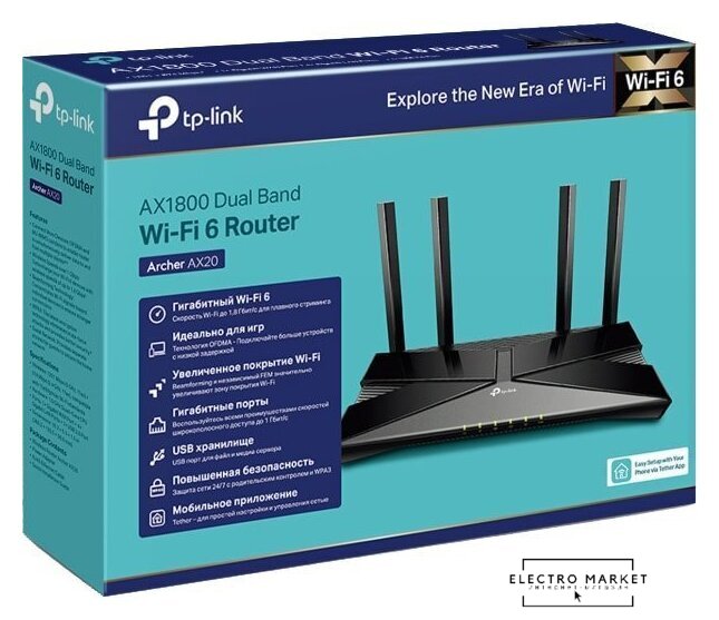 802.11ax (Wi-Fi 6), 2.4 ГГц/5 ГГц, до 3000 Mbps, 802.1X, WAN, 5xGigabit LAN, 1xUSB