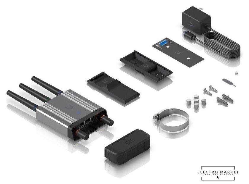 | Комплектация | Роутер, 5 внешних погодозащищённых антенн, комплект для монтажа на DIN-рейку, стену или мачту |