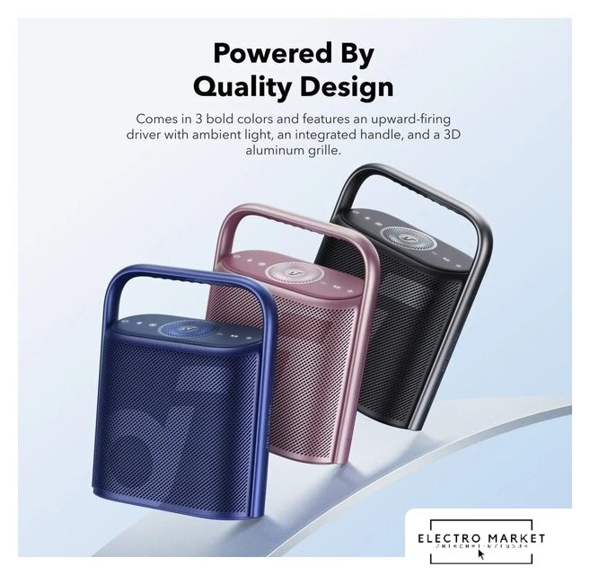 номинальная мощность 60 Вт, воспроизведение с USB, питание от аккумулятора, BT 5.0, AUX, влагозащита IPX6, время работы: 10 ч.