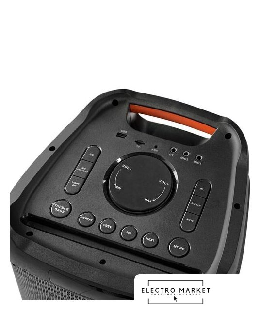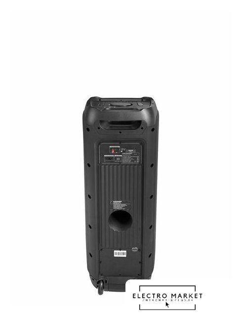 номинальная мощность 90 Вт, воспроизведение с USB/SD, питание от сети и аккумулятора, BT 2.1, AUX, время работы: 4 ч.