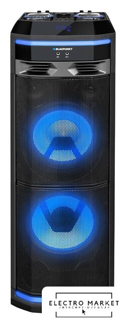 номинальная мощность 140 Вт, воспроизведение с USB/microSD, питание от сети и аккумулятора, BT 5.0, AUX, время работы: 8 ч.