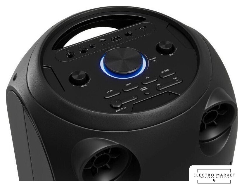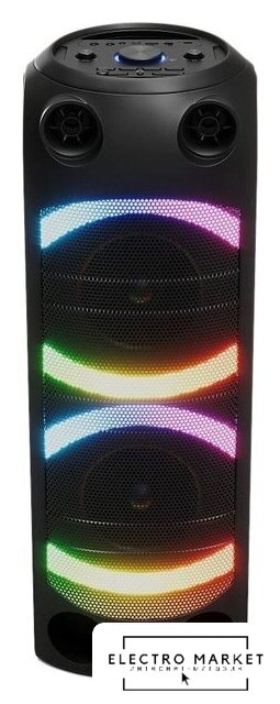 номинальная мощность 80 Вт, воспроизведение с USB/microSD, питание от аккумулятора, BT 5.0, AUX, время работы: 7 ч.
