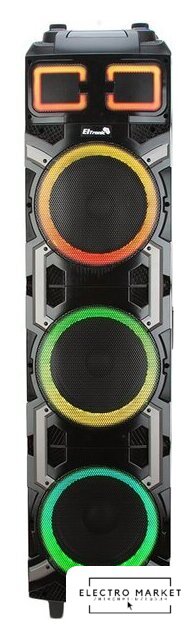 номинальная мощность 150 Вт, воспроизведение с USB/microSD, питание от сети и аккумулятора, BT 5.3, AUX, время работы: 10 ч.