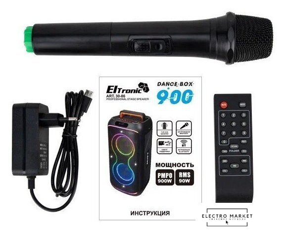 номинальная мощность 40 Вт, воспроизведение с USB/microSD, питание от аккумулятора, BT 5.3, AUX