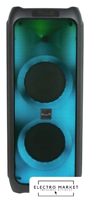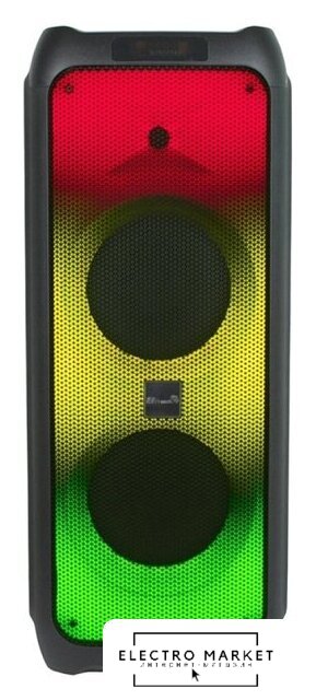 номинальная мощность 200 Вт, воспроизведение с USB/microSD, питание от сети и аккумулятора, BT, AUX, время работы: 5 ч.