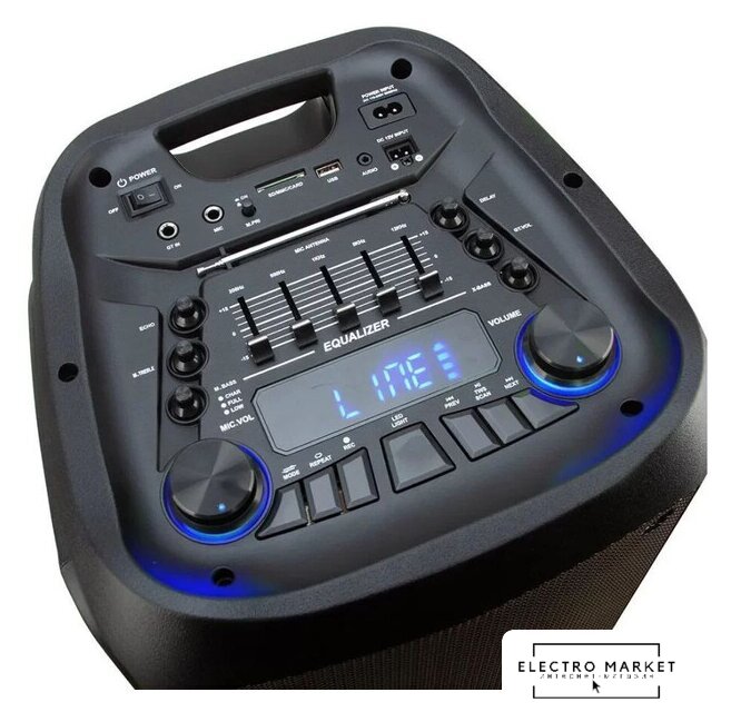 колонка для вечеринок, 80 Вт, питание от аккумулятора/от сети, карты памяти SD/microSD, bluetooth, радио