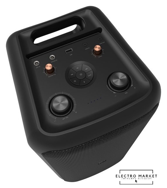 номинальная мощность 250 Вт, воспроизведение с USB, питание от сети и аккумулятора, BT 5.1, влагозащита IPX4, время работы: 20 ч.