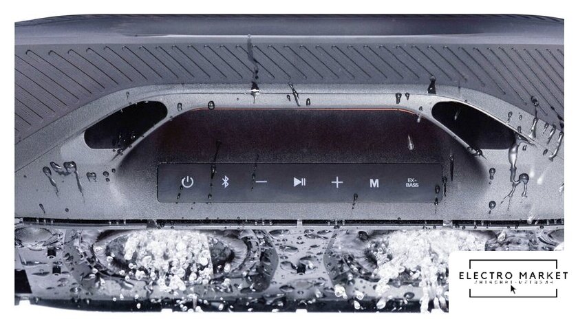 номинальная мощность 120 Вт, воспроизведение с USB, питание от аккумулятора, BT 5.3, AUX, влагозащита IPX4, время работы: 18 ч.