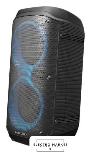 номинальная мощность 60 Вт, воспроизведение с USB/microSD, питание от сети и аккумулятора, BT 5.0, AUX, время работы: 5 ч.