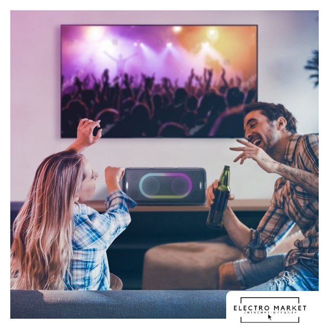 номинальная мощность 160 Вт, воспроизведение с USB, питание от сети и аккумулятора, BT 5.4, AUX, влагозащита IPX4, время работы: 12 ч.