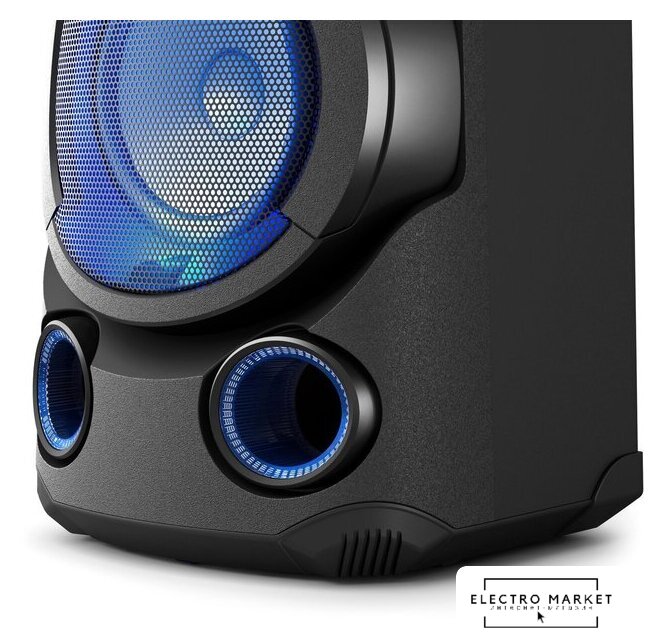 номинальная мощность 200 Вт, воспроизведение с USB/microSD, питание от сети и аккумулятора, BT 5.0, AUX, время работы: 5 ч.