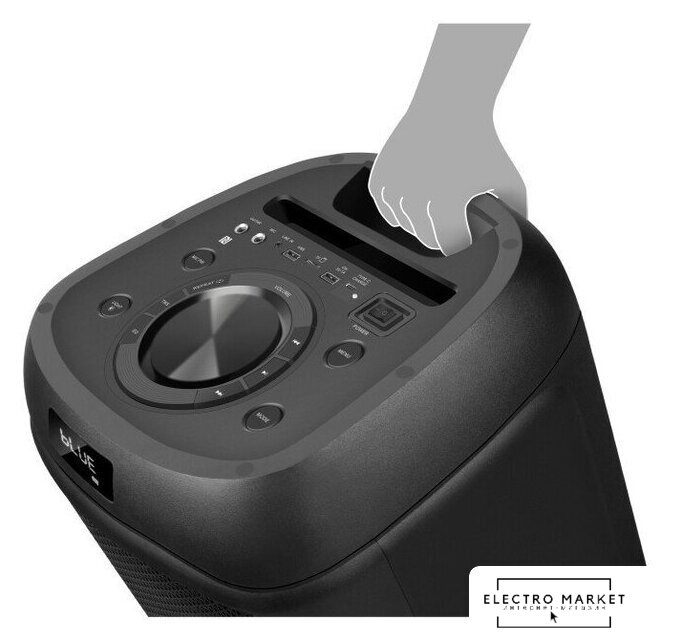номинальная мощность 160 Вт, воспроизведение с USB, питание от сети и аккумулятора, BT, NFC, AUX, время работы: 45 ч.