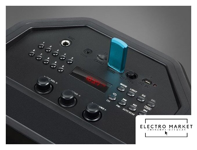 колонка для вечеринок, 80 Вт, питание от аккумулятора/от сети, карты памяти SD/microSD, bluetooth, радио