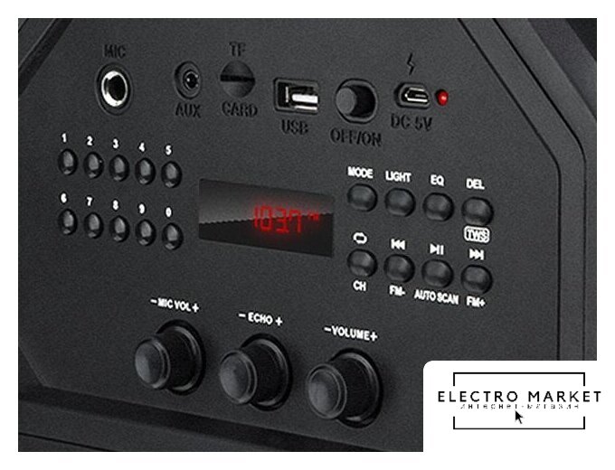 колонка для вечеринок, 120 Вт, питание от аккумулятора/от сети, карты памяти microSD, bluetooth, радио