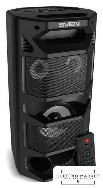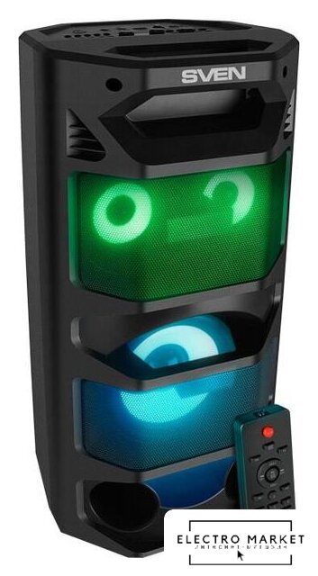 номинальная мощность 64 Вт, воспроизведение с USB/microSD, питание от сети и аккумулятора, BT 5.0, AUX, время работы: 4 ч.