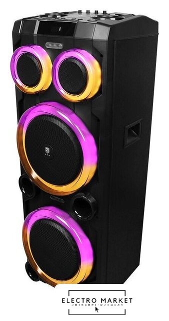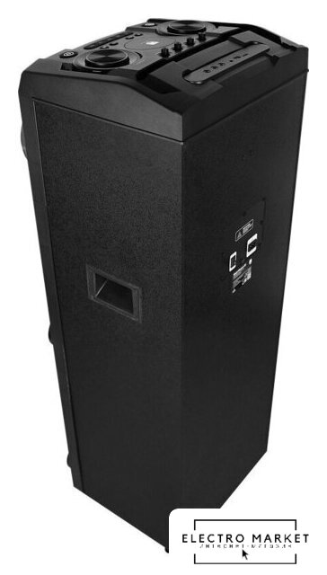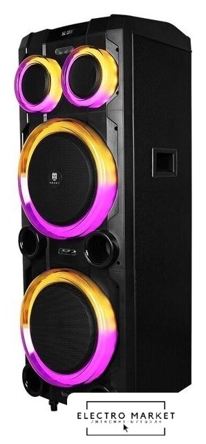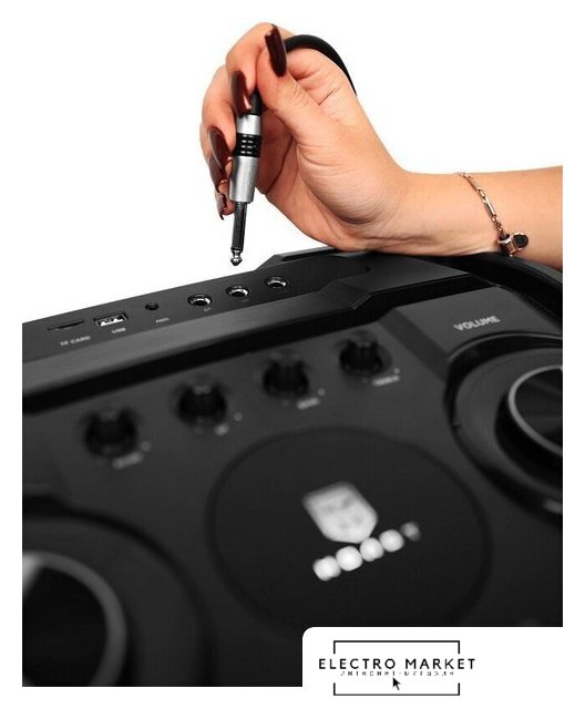 номинальная мощность 200 Вт, воспроизведение с USB/microSD, питание от аккумулятора, BT 5.0, AUX, время работы: 6 ч.